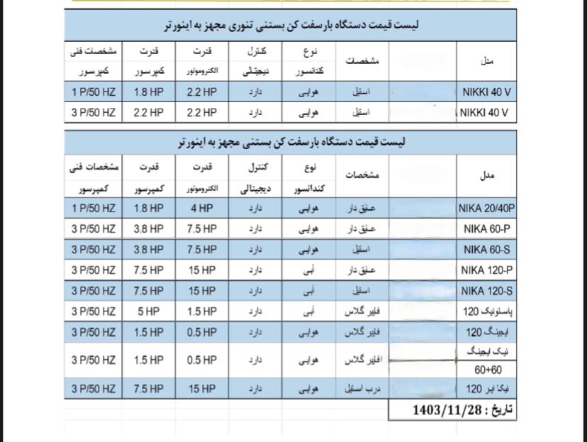 دستگاه های بار سفت کن تنوری و درب عایق دار و استیل موجود میباشد