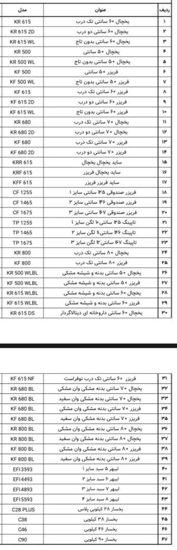 یخساز ها با حجم های 28 ، 38 ، 46 و 90 کیلو گرمی در رنگ بندی های سفید و مشکی موجود میباشند