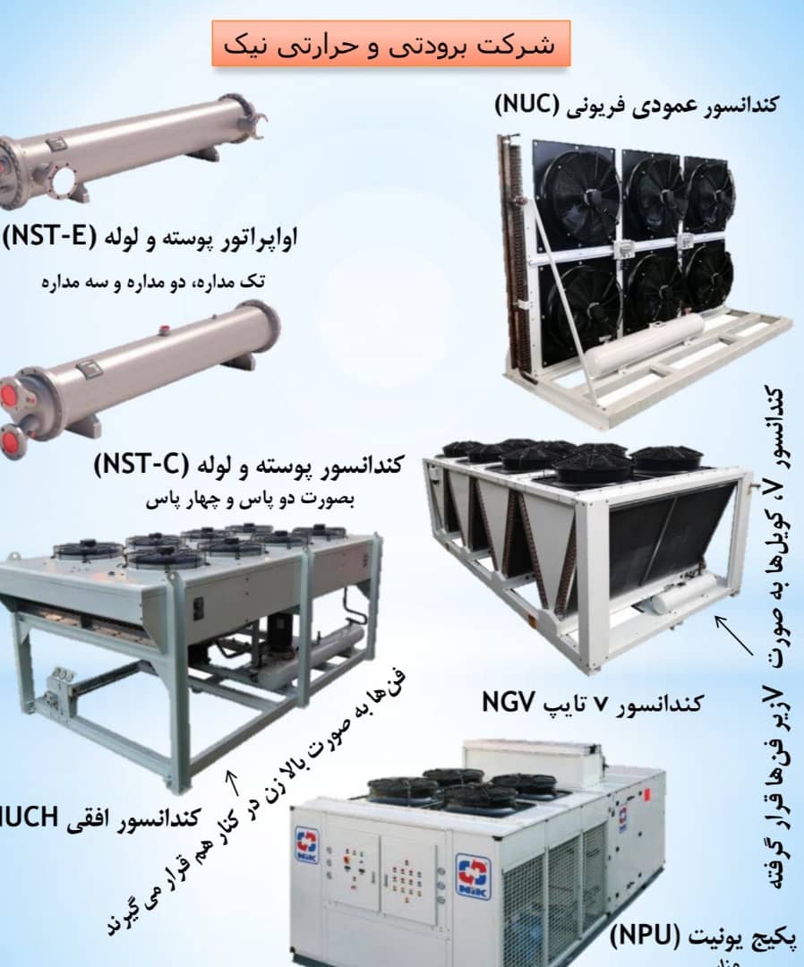 انواع کندانسور های پوسته/عمودی فریونی/افقی/vتایپ موجود میباشد